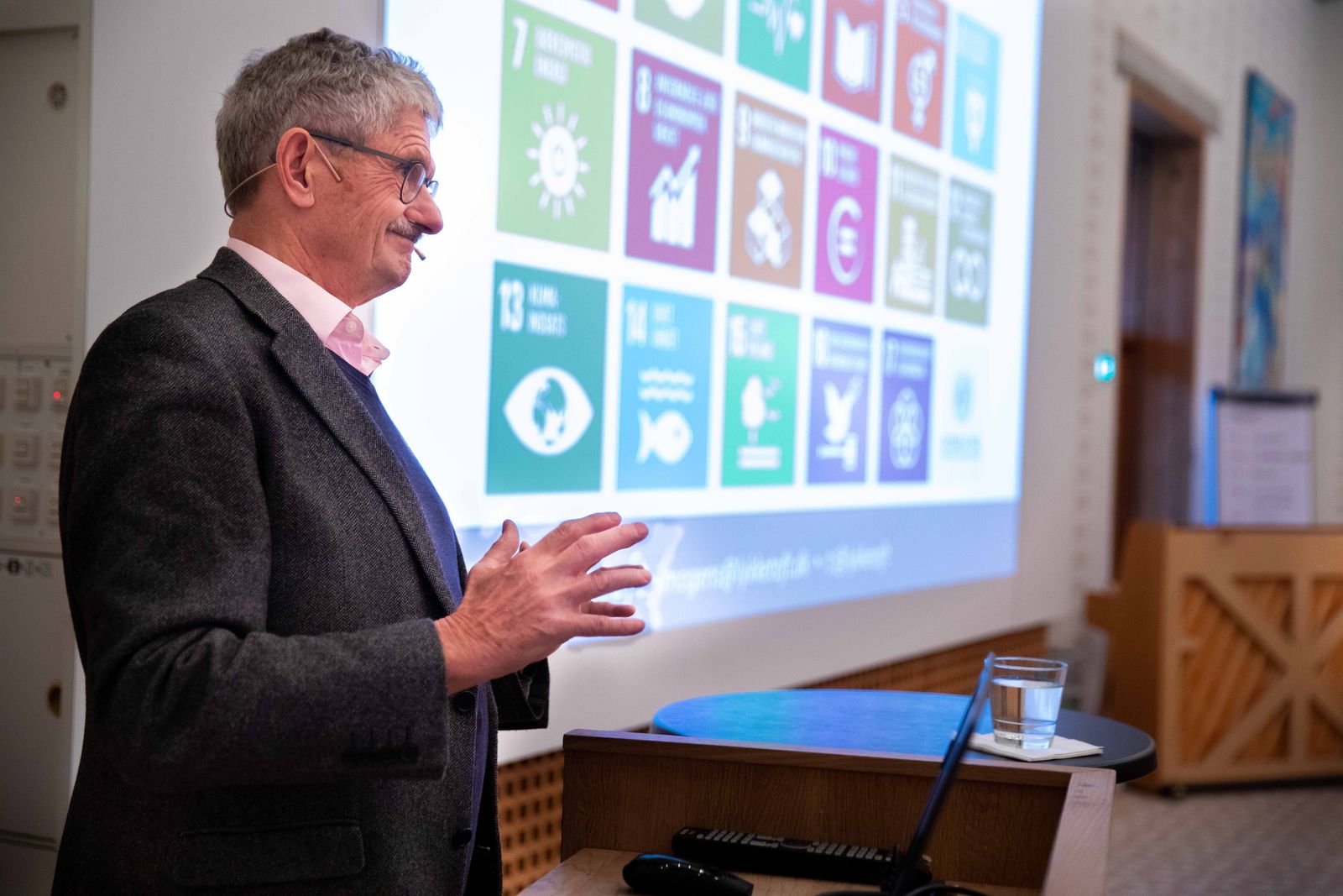 Mogens Lykketoft gennemgik slavisk, men indsigtsfuldt de 17 verdensmål, mens han undervejs gav et indblik i sit store katalog af viden om verden i nutid og datid.