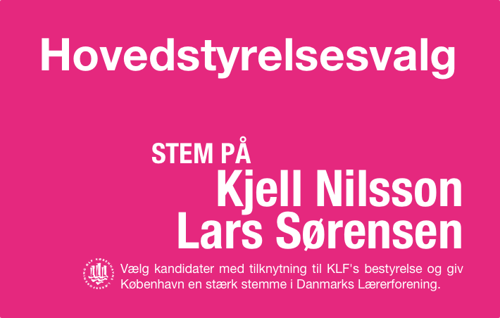 "De københavnske lærere har brug for at få valgt kandidater som er rodfæstet i KLF's bestyrelse, det får man med Kjell Nilsson og næstformand Lars Sørensen", understreger Jan Trojaborg på vegne af bestyrelsen.