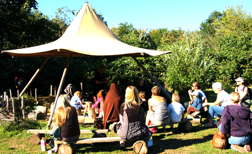 De håndtamme høns blev fodret, og under sommerhatten lyttede både børn og voksne til oplæsning af Carl Ewalds natureventyr samt guitarspil og høstsange.
