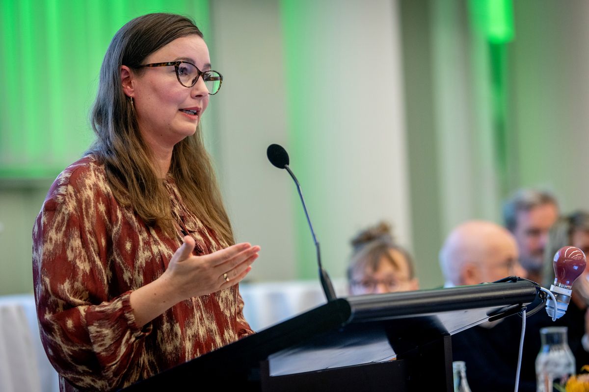 Først på dagens dagsorden var KLF-formandens mundtlige beretning, og også hun talte om de københavnske læreres ytringsfrihed.